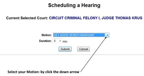 Click the down arrow to display all judges. Select the desired judge and court and click